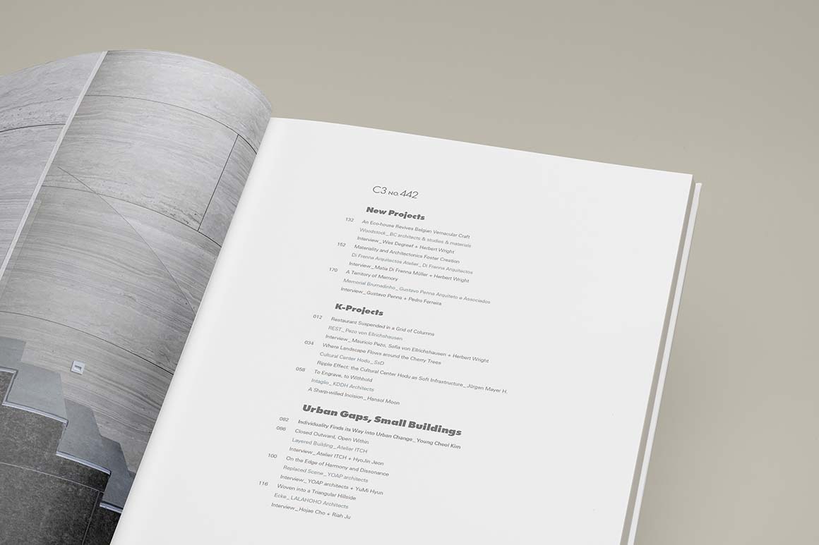 The current issue, C3 442, highlights nine projects from Korea and abroad that interpret the unique grammar of the land to cultivate humanistic thought and sustainable value. We take a close look at the rigorous intellectual processes through which architecture conforms to the natural order, delicately permeates urban interstices, and transforms painful histories into territories of memory.